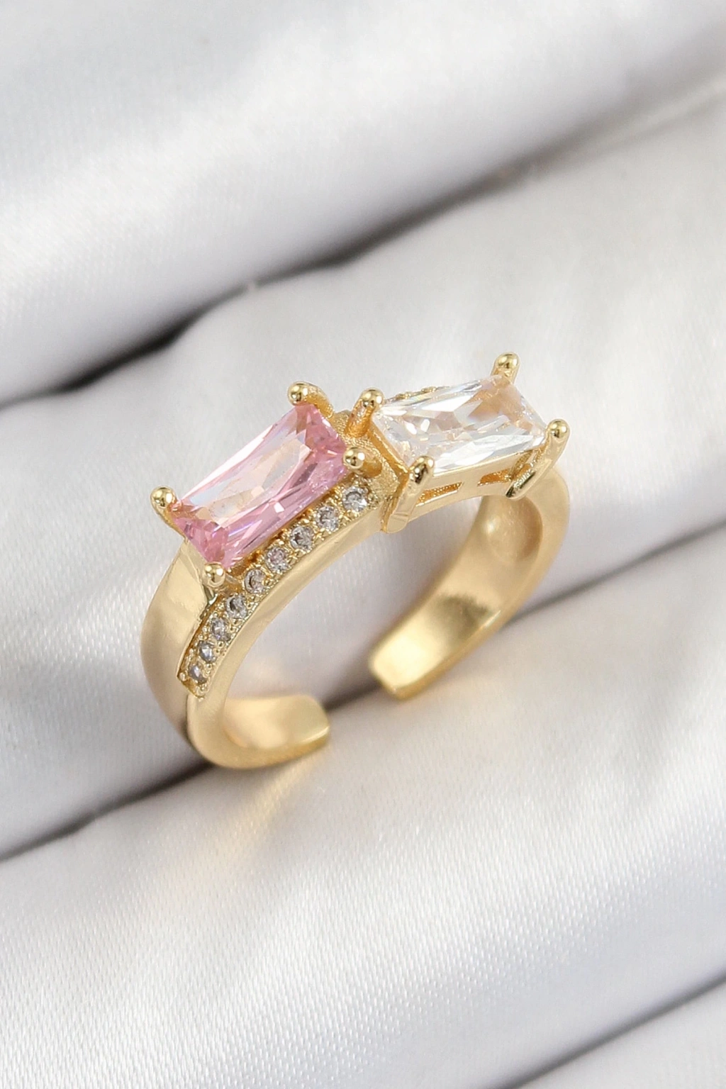 BFS Pirinç Zirkon Taşlı Dikdörtgen Model Gold Renk Kadın Yüzük