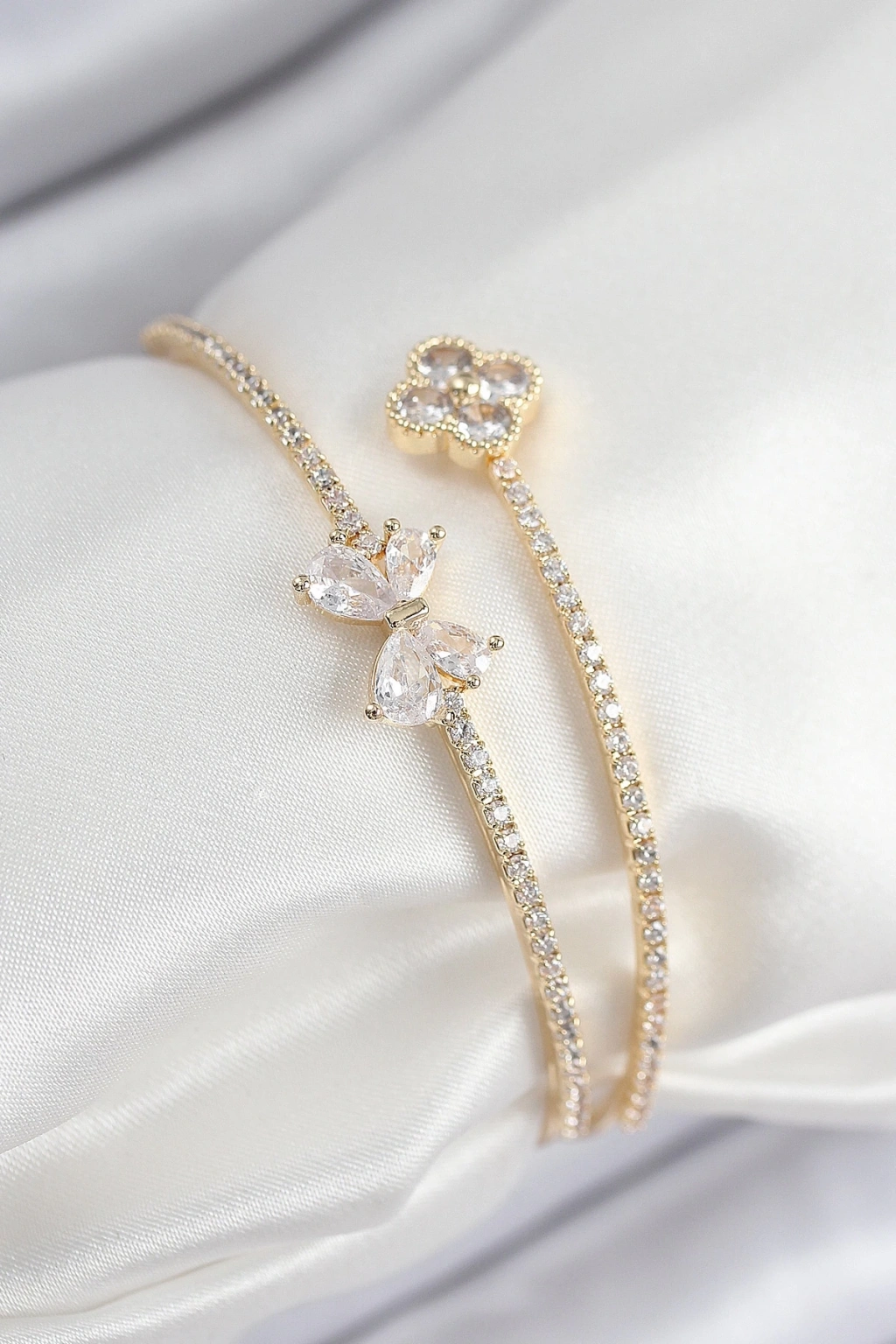 BFS Pirinç Zirkon Taşlı Fiyonk Ve Yonca Model Gold Renk Kadın Bileklik