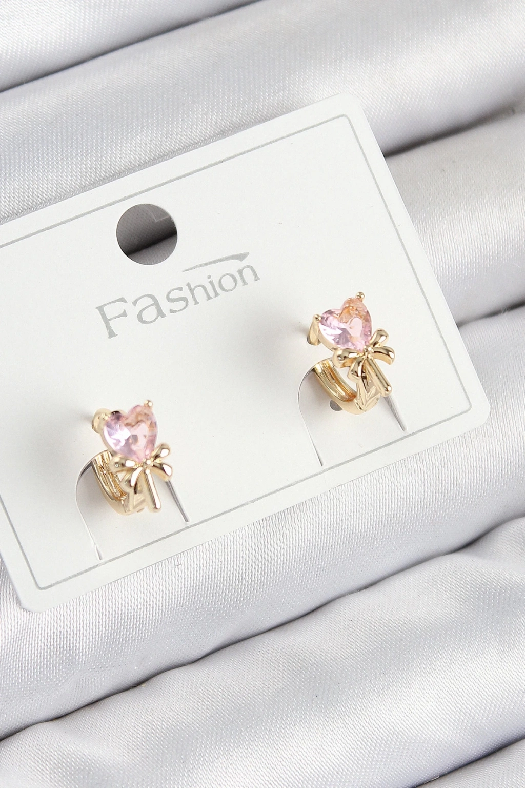 BFS Pirinç Zirkon Taşlı Fiyonklu Kalp Model Gold Renk Çocuk Küpe