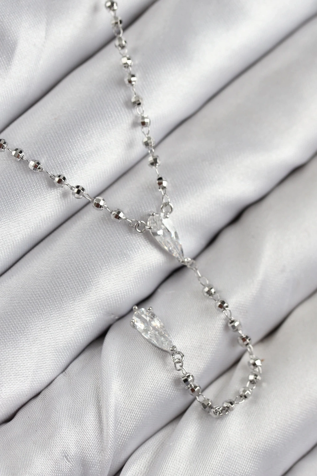 BFS Pirinç Zirkon Taşlı Gümüş Renk Kadın Y Kolye