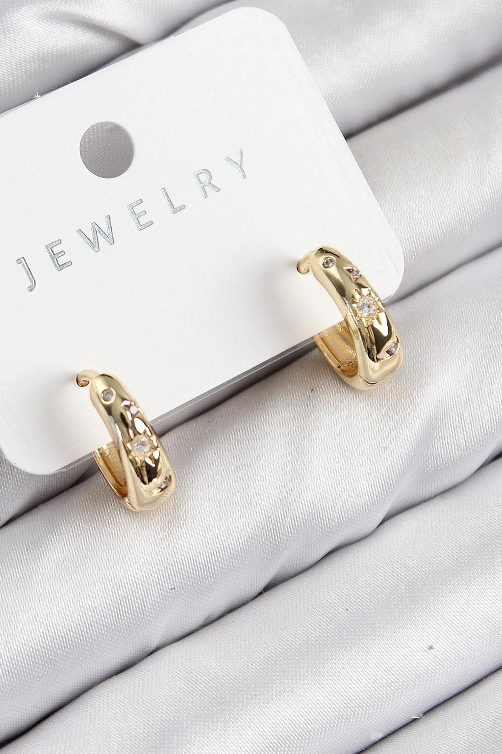 BFS Pirinç Zirkon Taşlı Halka Model Gold Renk Kadın Küpe