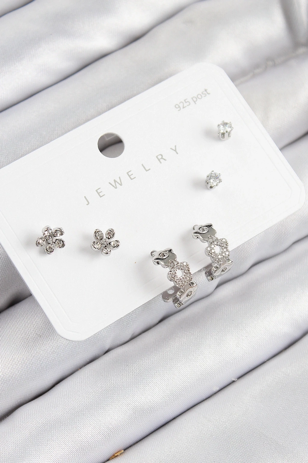 BFS Pirinç Zirkon Taşlı Halka Model Gümüş Renk 925 Ayar Gümüş Çivi Kadın Küpe Set