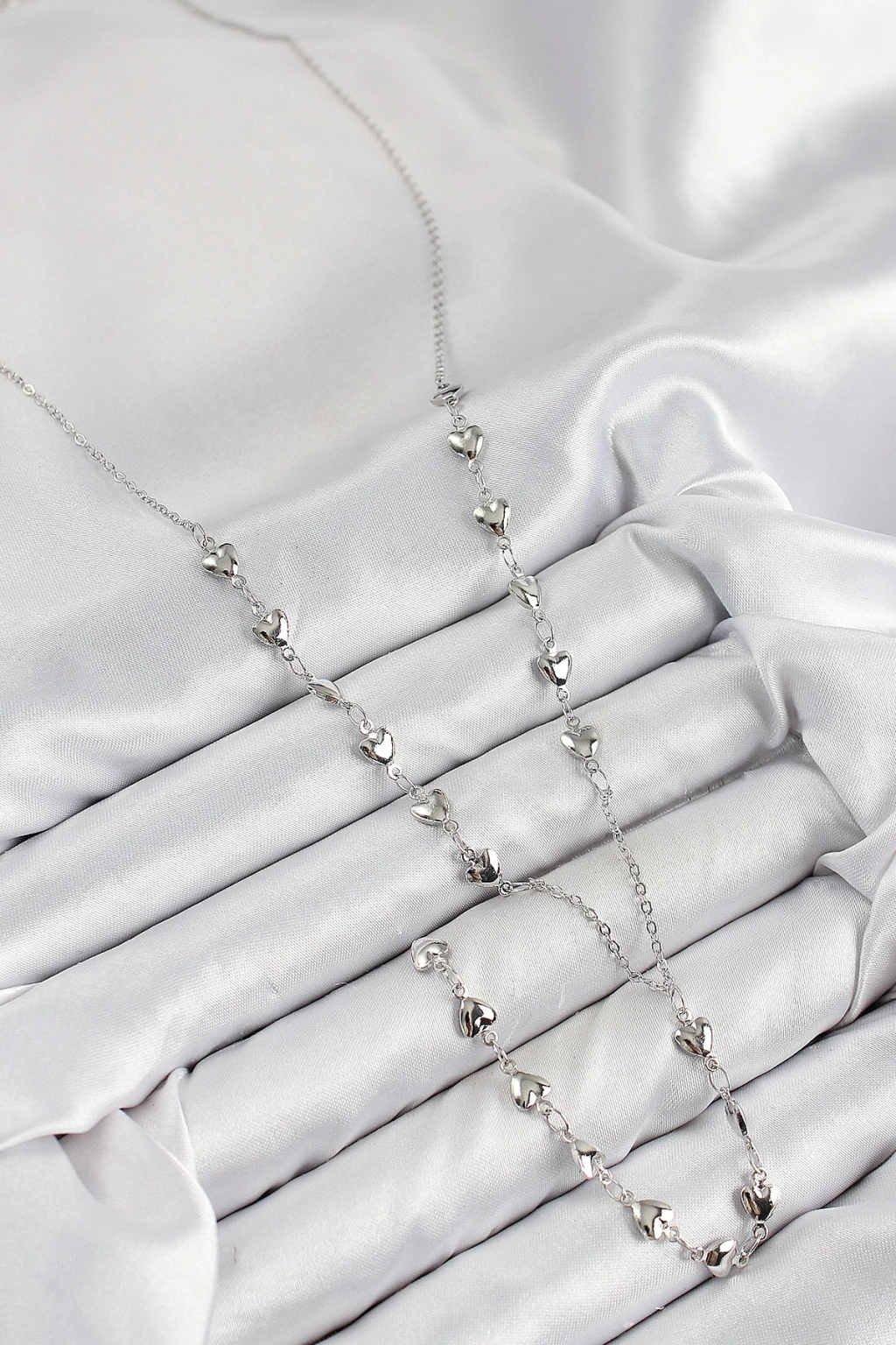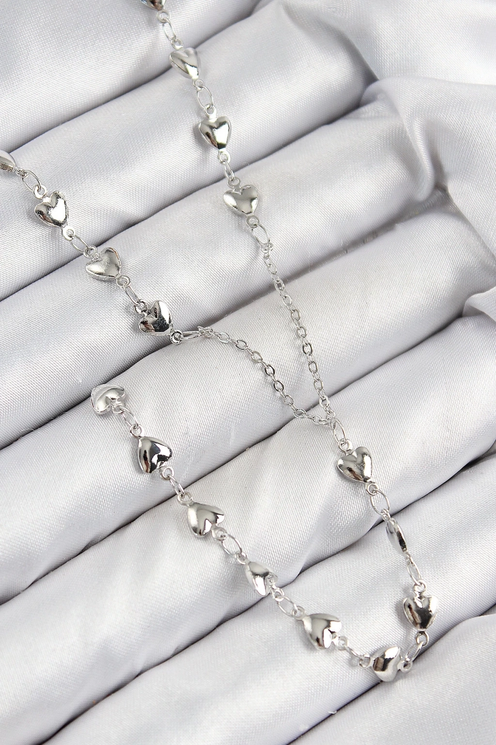 BFS Pirinç Zirkon Taşlı Kalp Model Gümüş Renk Y Kolye