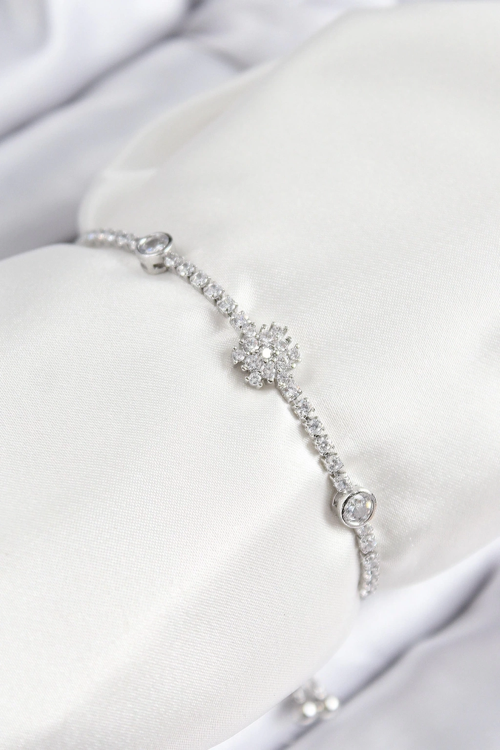 BFS Pirinç Zirkon Taşlı Kar Tanesi Model Gümüş Renk Asansörlü Kadın Bileklik