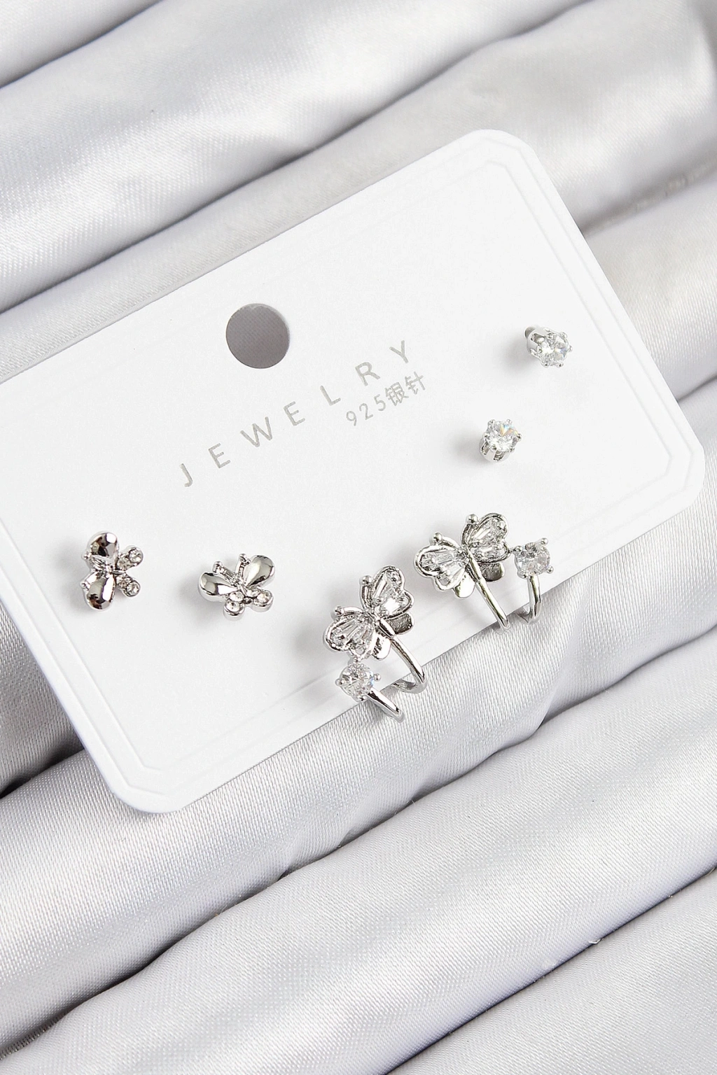 BFS Pirinç Zirkon Taşlı Kelebek Model Gümüş Renk 925 Ayar Gümüş Çivi Kadın Küpe Set