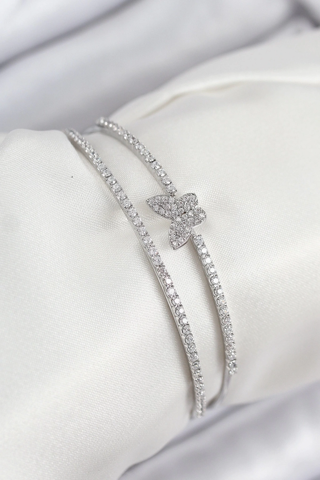 BFS Pirinç Zirkon Taşlı Kelebek Model Gümüş Renk Kadın Bileklik
