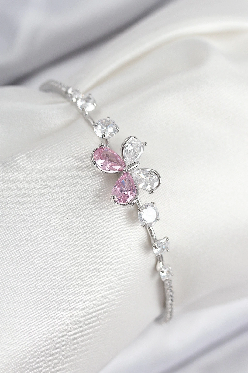 BFS Pirinç Zirkon Taşlı Kelebek Model Gümüş Renk Kadın Bileklik