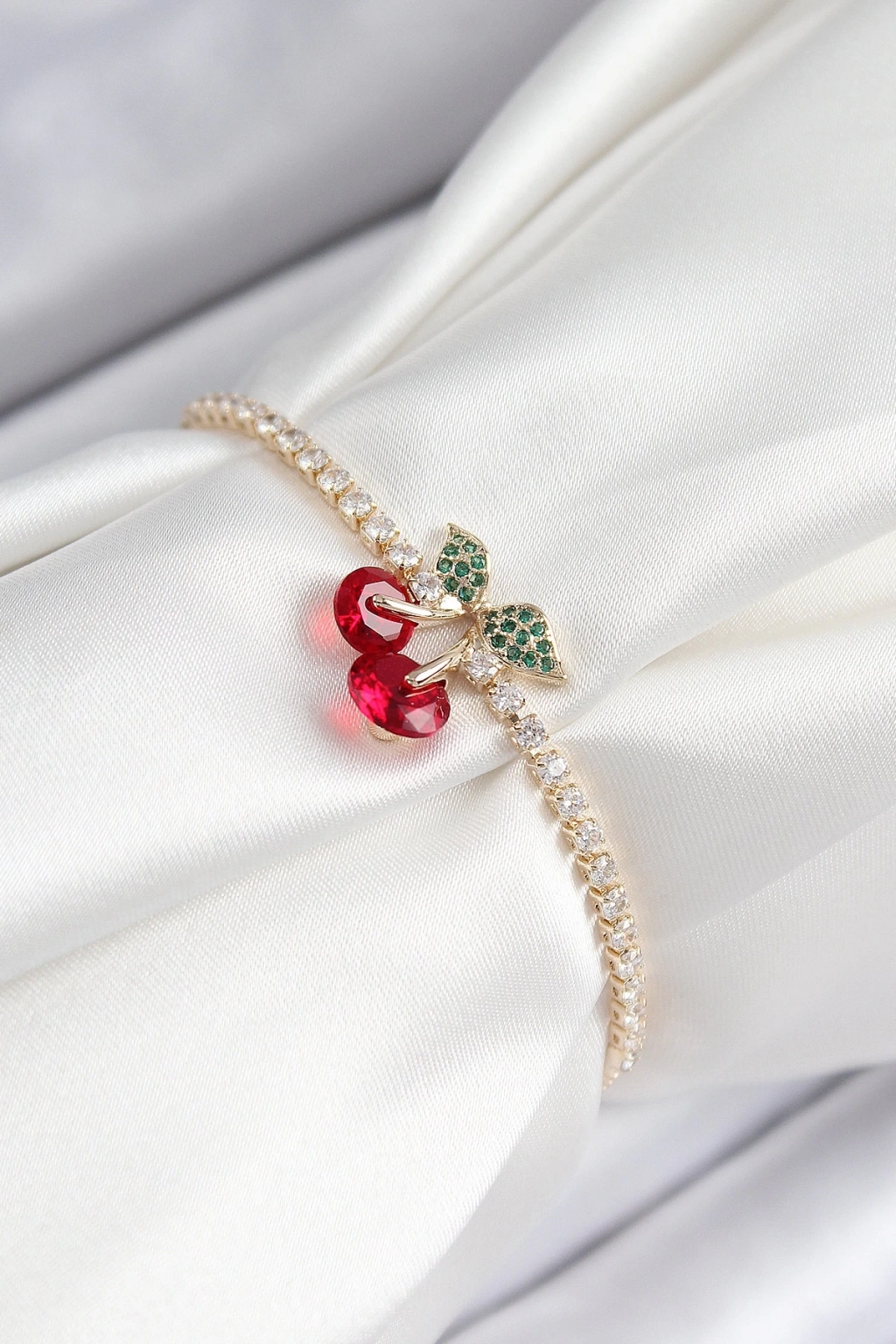 BFS Pirinç Zirkon Taşlı Kiraz Model Gold Renk Asansörlü Kadın Bileklik