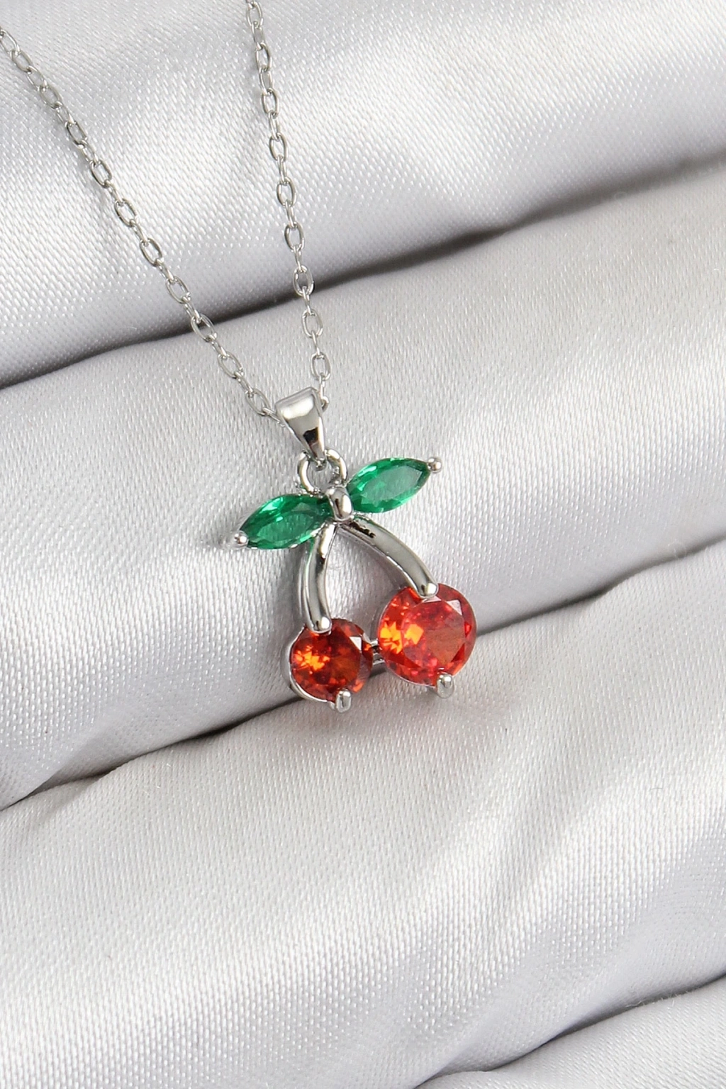 BFS Pirinç Zirkon Taşlı Kiraz Model Gümüş Renk Kadın Kolye