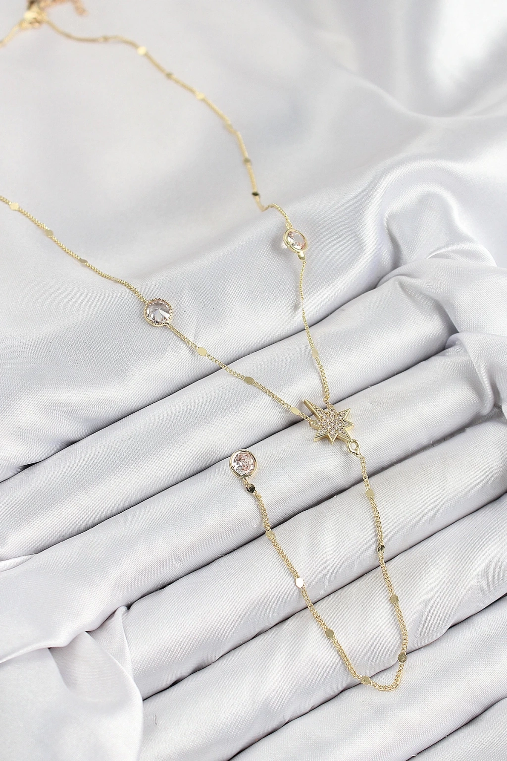 BFS Pirinç Zirkon Taşlı Kutup Yıldızı Model Gold Renk Y Kolye