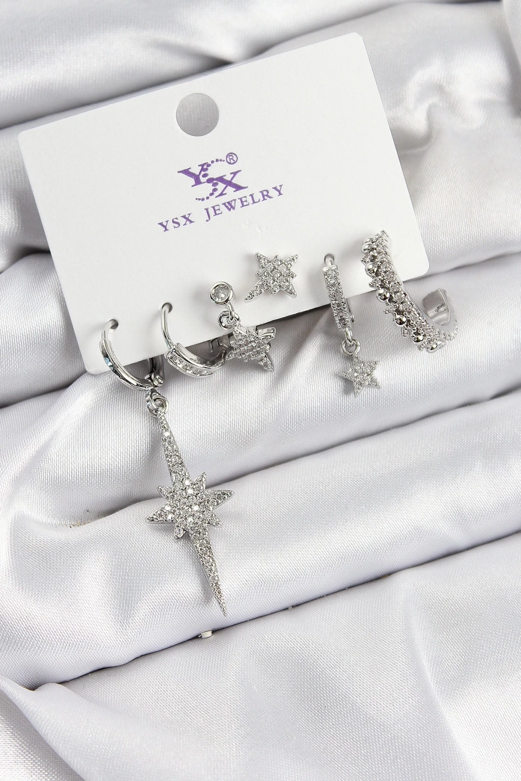BFS Pirinç Zİrkon Taşlı Kutup Yıldızı Model Gümüş Renk 3'lü Çift Kadın Küpe