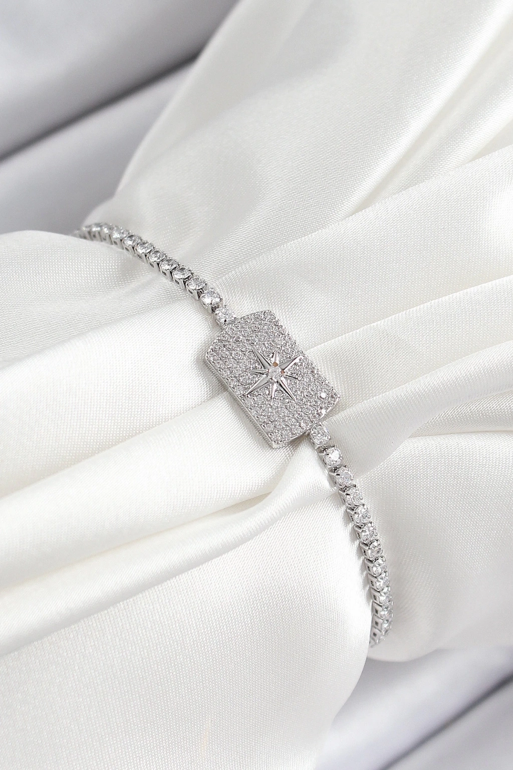 BFS Pirinç Zirkon Taşlı Kutup Yıldızı Model Gümüş Renk Asansörlü Kadın Bileklik