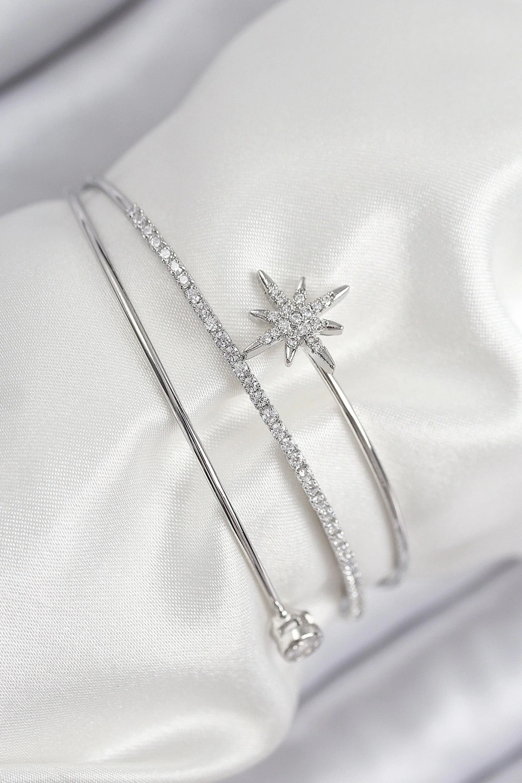 BFS Pirinç Zirkon Taşlı Kutup Yıldızı Model Gümüş Renk Kadın Bileklik