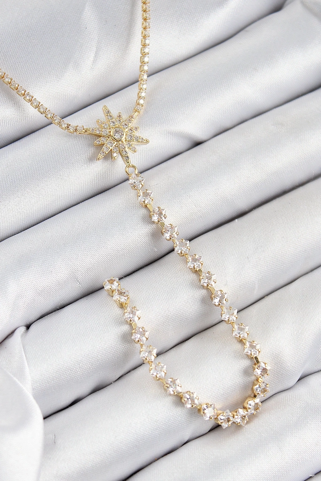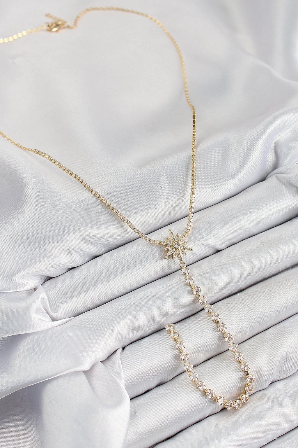 BFS Pirinç Zirkon Taşlı Kutup Yıldızı Model Gümüş Renk Y Kolye