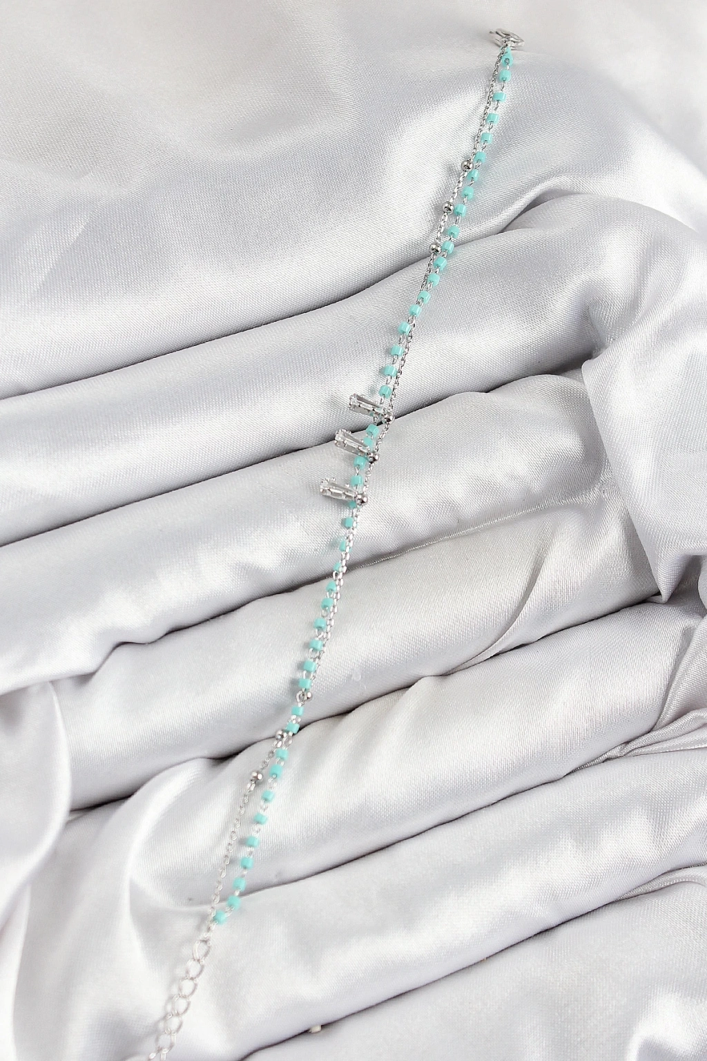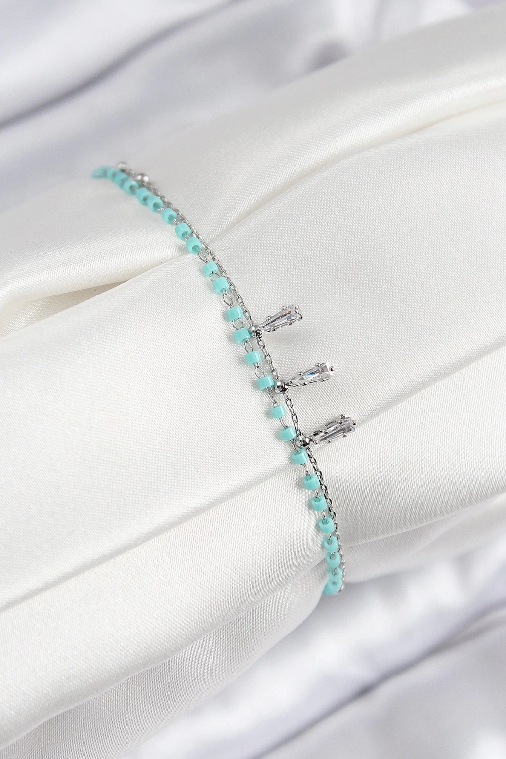 BFS Pirinç Zirkon Taşlı Mavi Boncuklu Model Gümüş Renk Kadın Bileklik