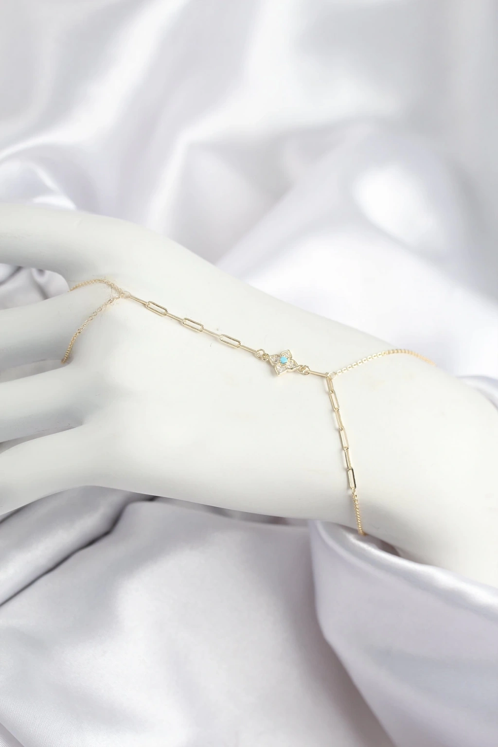 BFS Pirinç Zirkon Taşlı Mavi Boncuklu Yonca Model Gold Renk Şahmeran