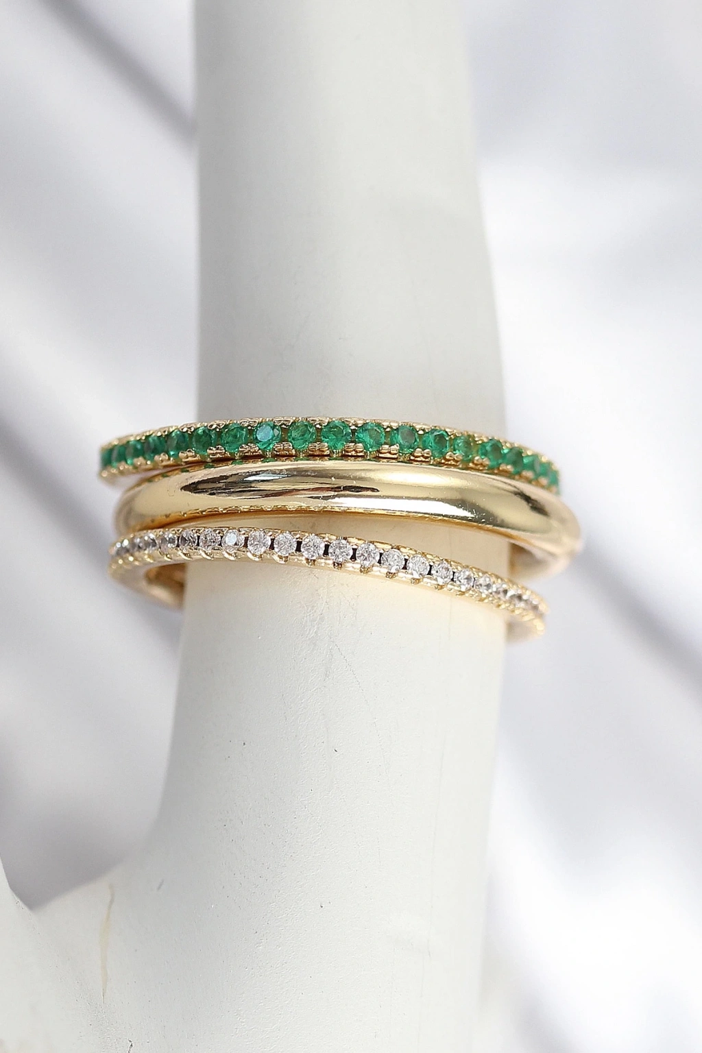 BFS Pirinç Zirkon Taşlı Mix Renk 3'Lü Kadın Yüzük