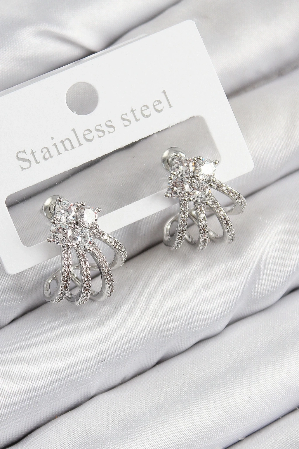 BFS Pirinç Zirkon Taşlı Model Gümüş Renk Kadın Küpe