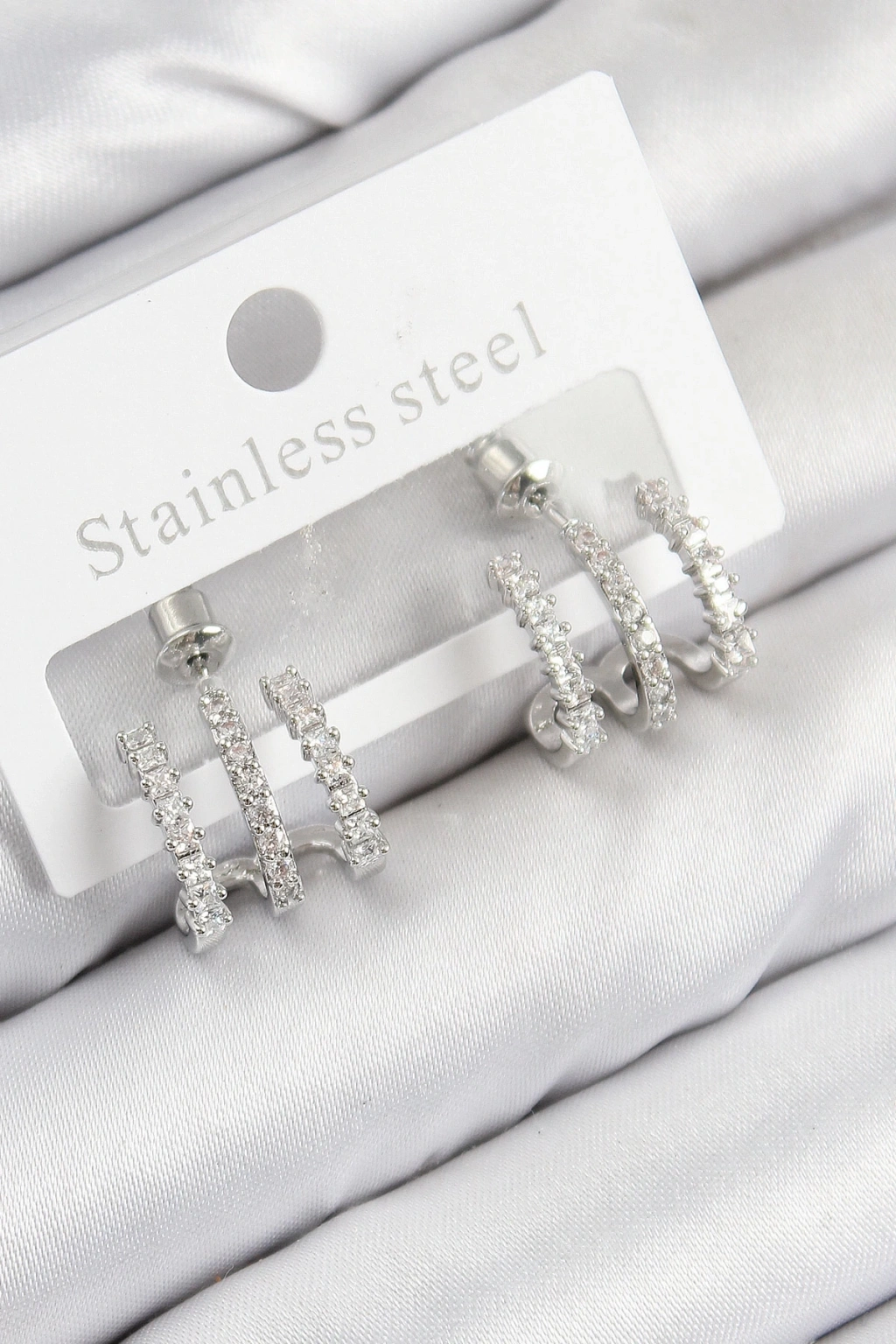 BFS Pirinç Zirkon Taşlı Model Gümüş Renk Kadın Küpe
