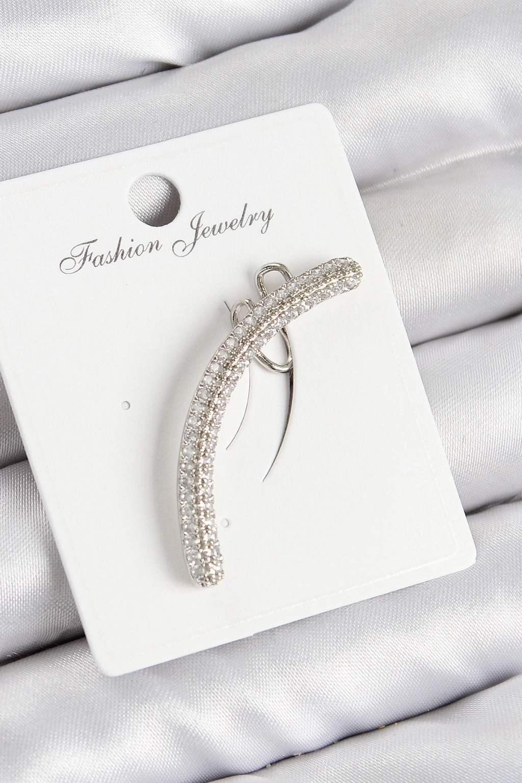BFS Pirinç Zirkon Taşlı Model Gümüş Renk Sağ Kıkırdak Küpe