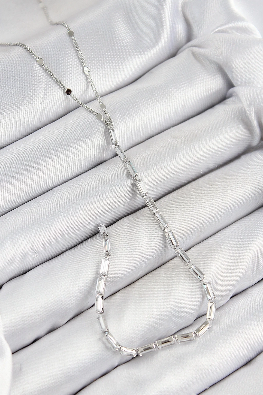 BFS Pirinç Zirkon Taşlı Model Gümüş Renk Y Kolye