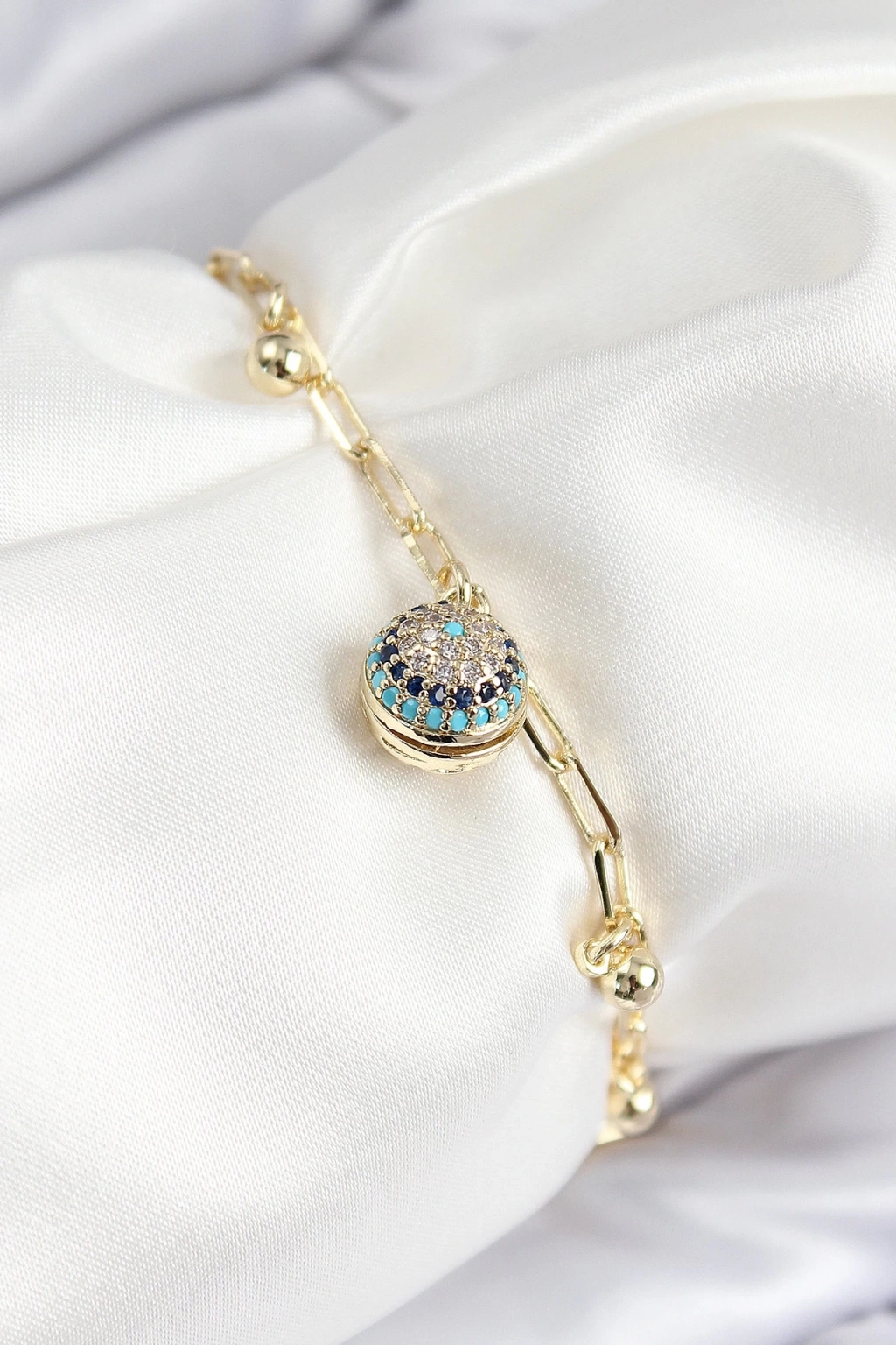 BFS Pirinç Zirkon Taşlı Nazar Boncuğu Model Gold Renk Kadın Bileklik