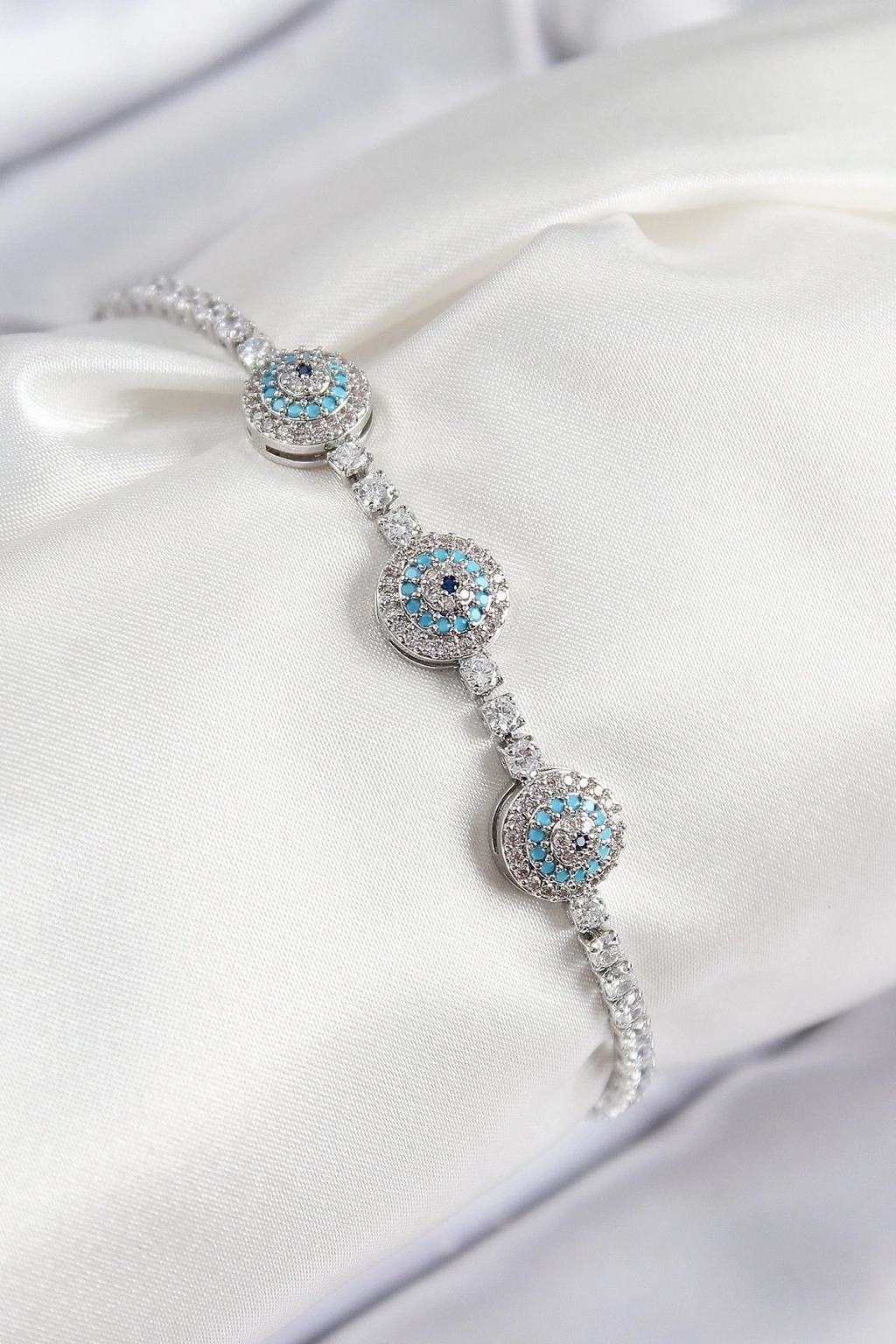 BFS Pirinç Zirkon Taşlı Nazar Model Gümüş Renk Kadın Bileklik
