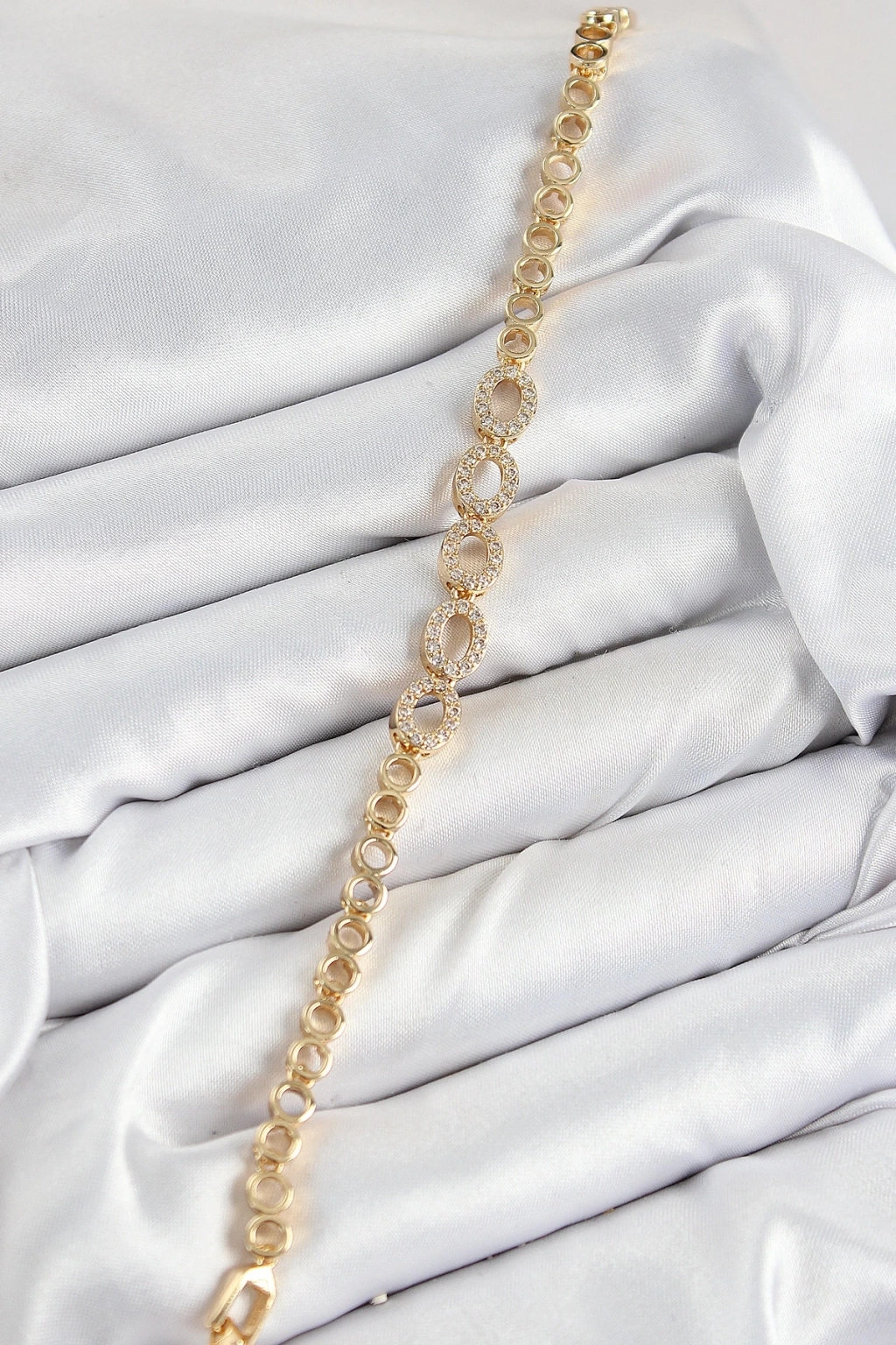 BFS Pirinç Zirkon Taşlı Oval Model Gold Renk Kadın Bileklik