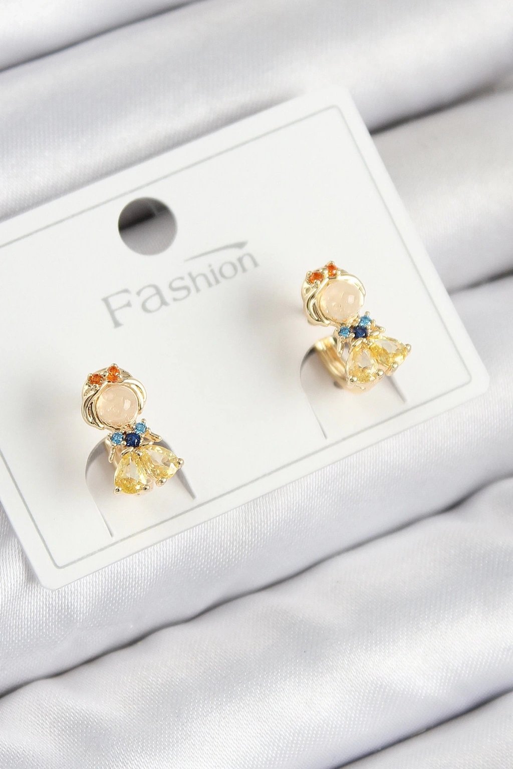 BFS Pirinç Zirkon Taşlı Pamuk Prenses Model Gold Renk Çocuk Küpe