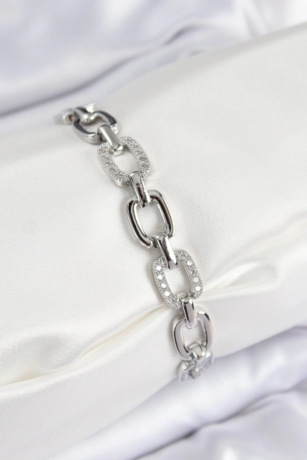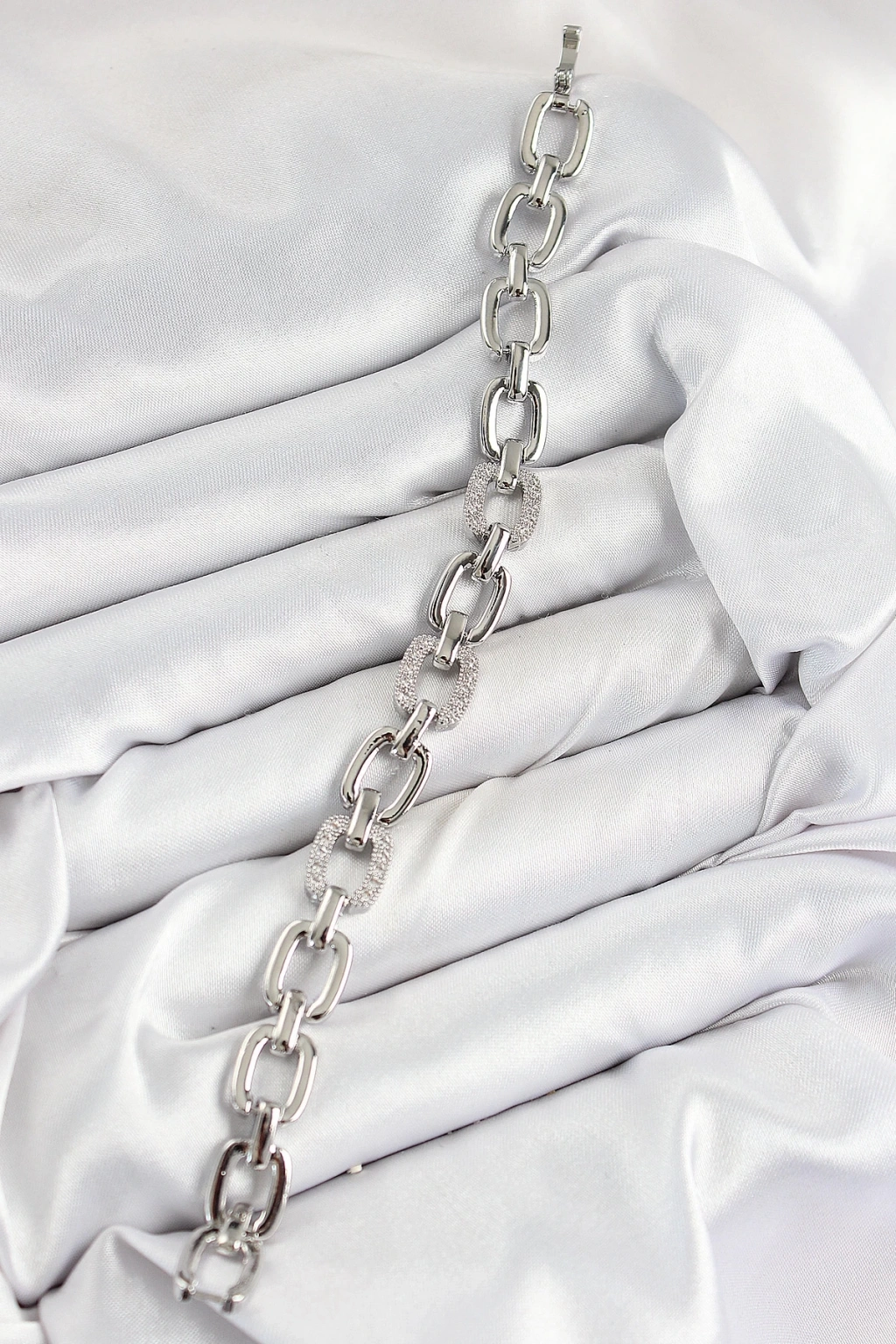 BFS Pirinç Zirkon Taşlı Parçalı Zincir Model Gümüş Renk Kadın Bileklik