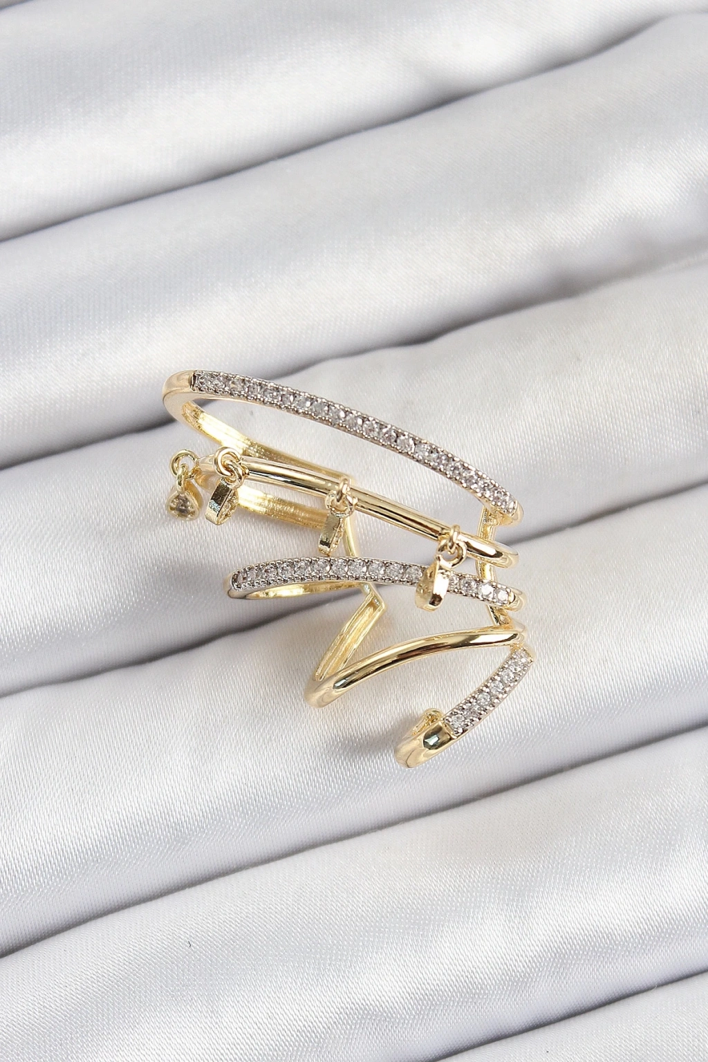 BFS Pirinç Zirkon Taşlı Sıkıştırma Sağ Kıkırdak Gold Renk Kadın Küpe