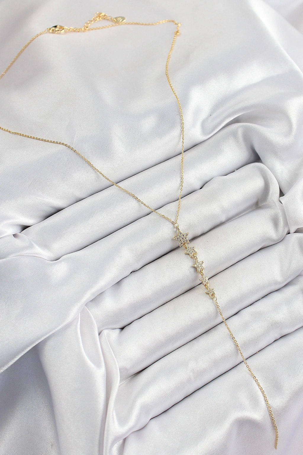 BFS Pirinç Zirkon Taşlı Sıralı Yıldız Figürlü Y Model Gold Renk Kadın Kolye