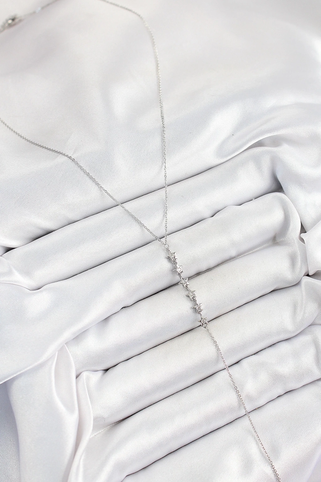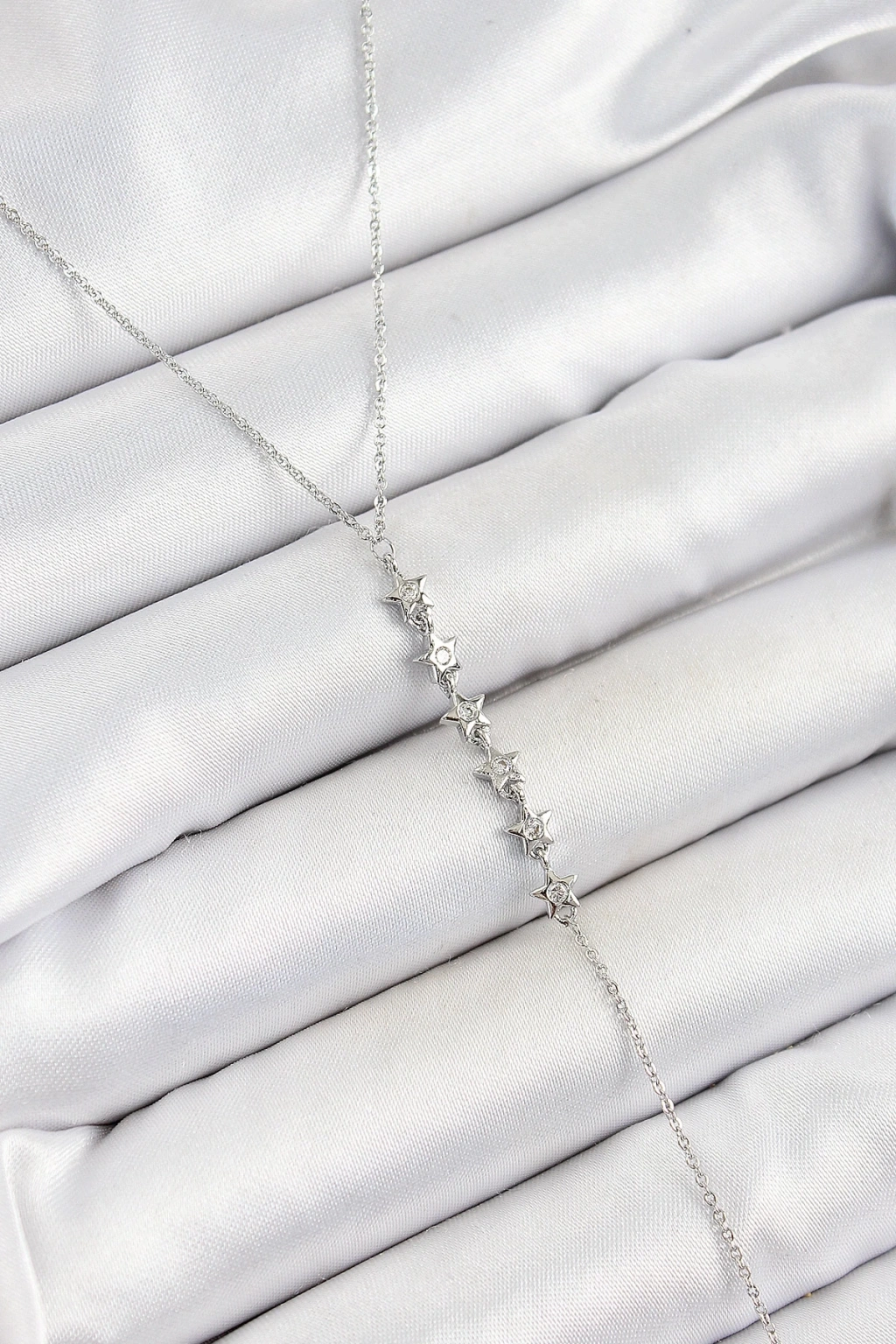BFS Pirinç Zirkon Taşlı Sıralı Yıldız Figürlü Y Model Gümüş Renk Kadın Kolye