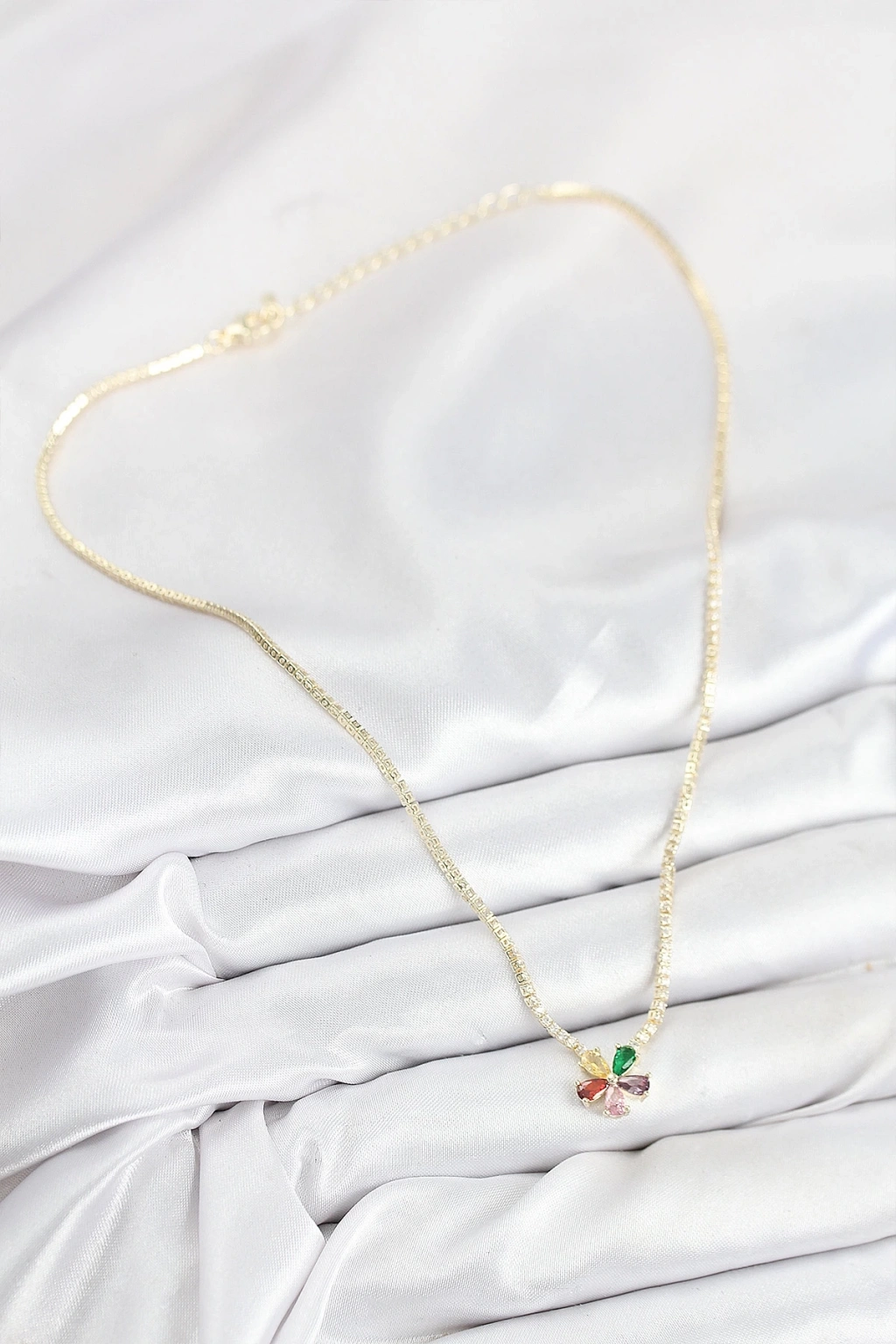 BFS Pirinç Zirkon Taşlı Su Yolu Asorti Çiçek Model Gold Renk Kadın Kolye