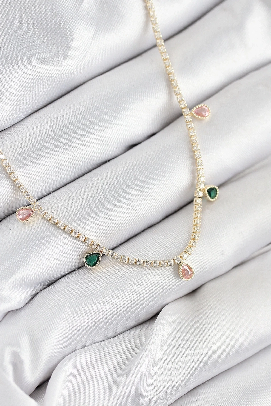 BFS Pirinç Zirkon Taşlı Su Yolu Damla Model Gold Renk Kadın Kolye
