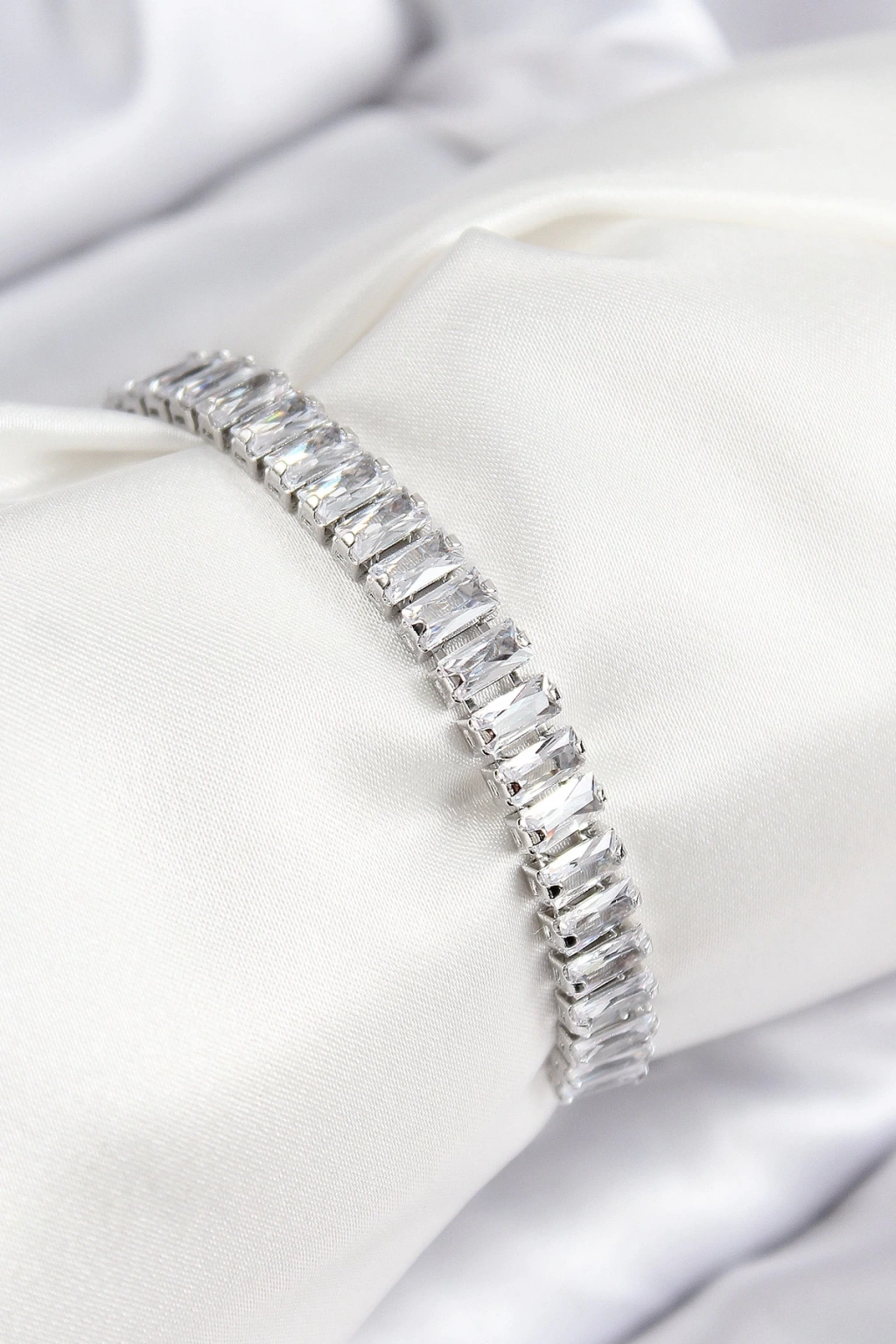 BFS Pirinç Zirkon Taşlı Su Yolu Model Gümüş Renk Asansörlü Kadın Bileklik