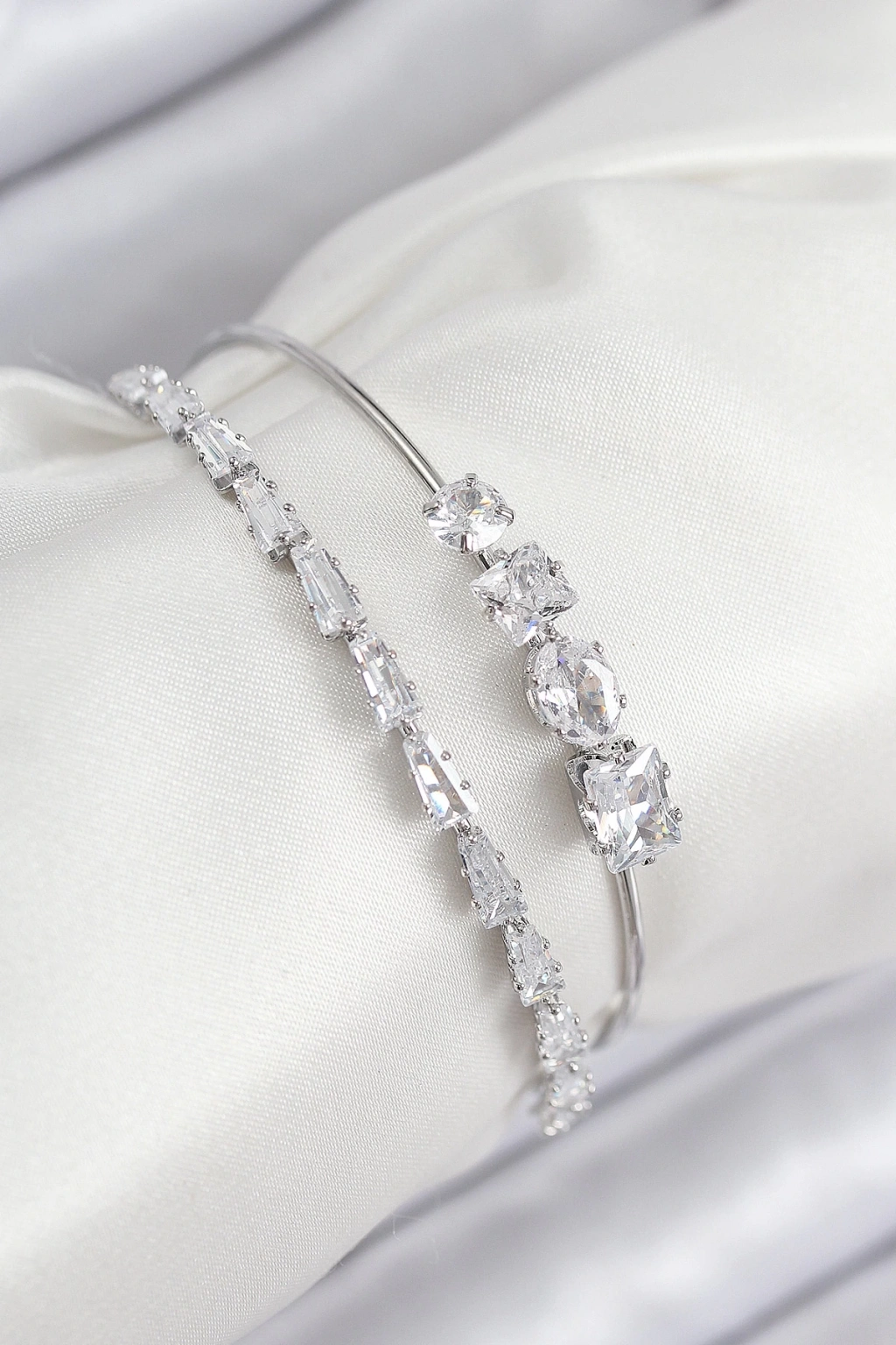 BFS Pirinç Zirkon Taşlı Su Yolu Model Gümüş Renk Kadın Bileklik