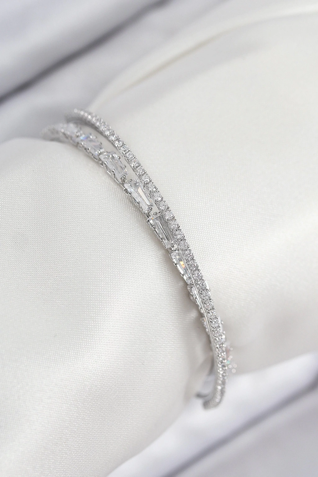 BFS Pirinç Zirkon Taşlı Su Yolu Model Gümüş Renk Kadın Bileklik