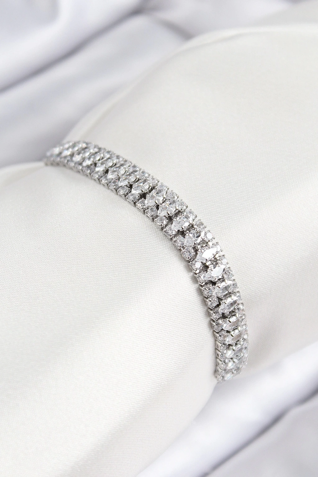BFS Pirinç Zirkon Taşlı Tennıs Model Gümüş Renk Asansörlü Kadın Bileklik