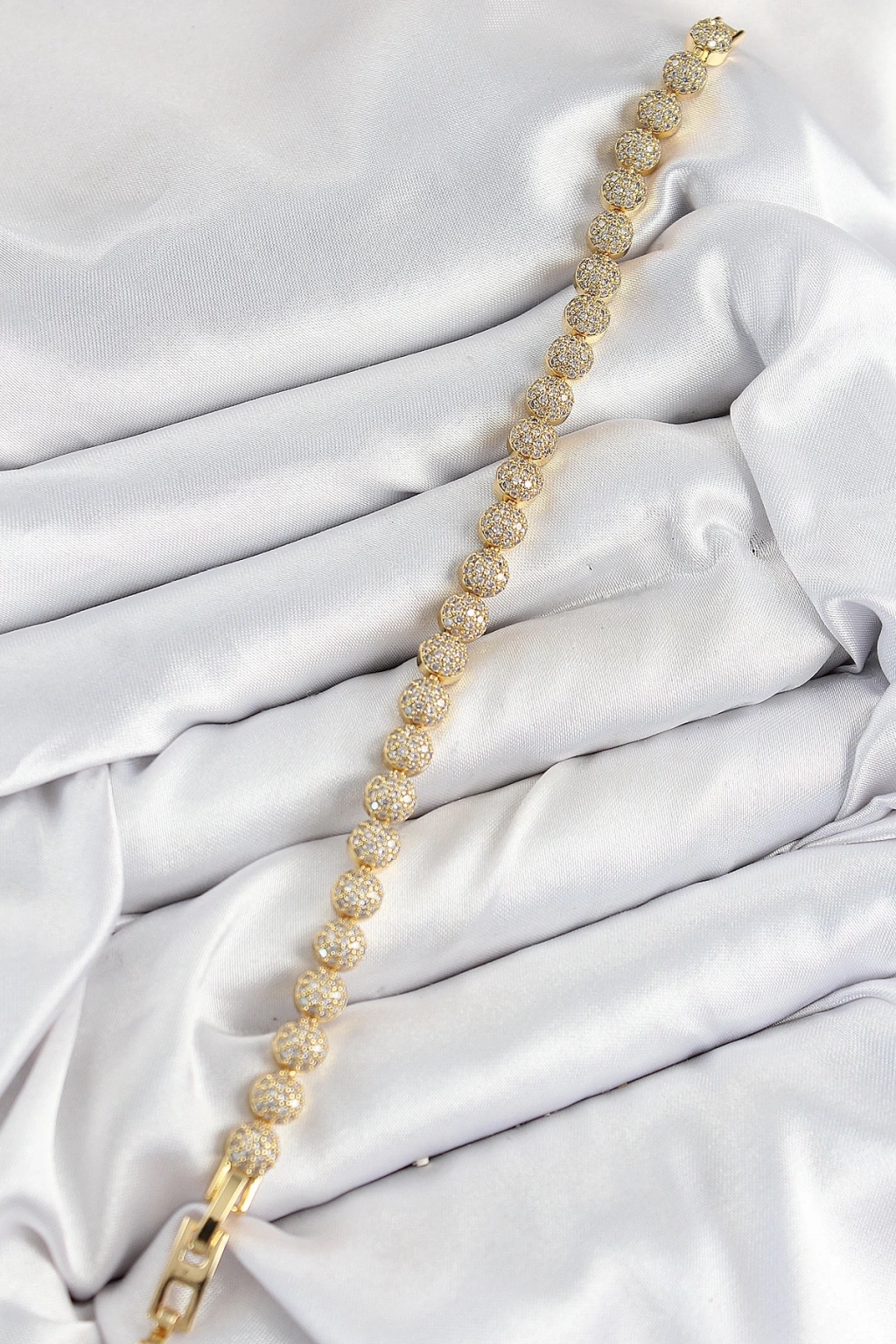 BFS Pirinç Zirkon Taşlı Yarım Topcuk Model Gold Renk VIP Seri Kadın Bileklik
