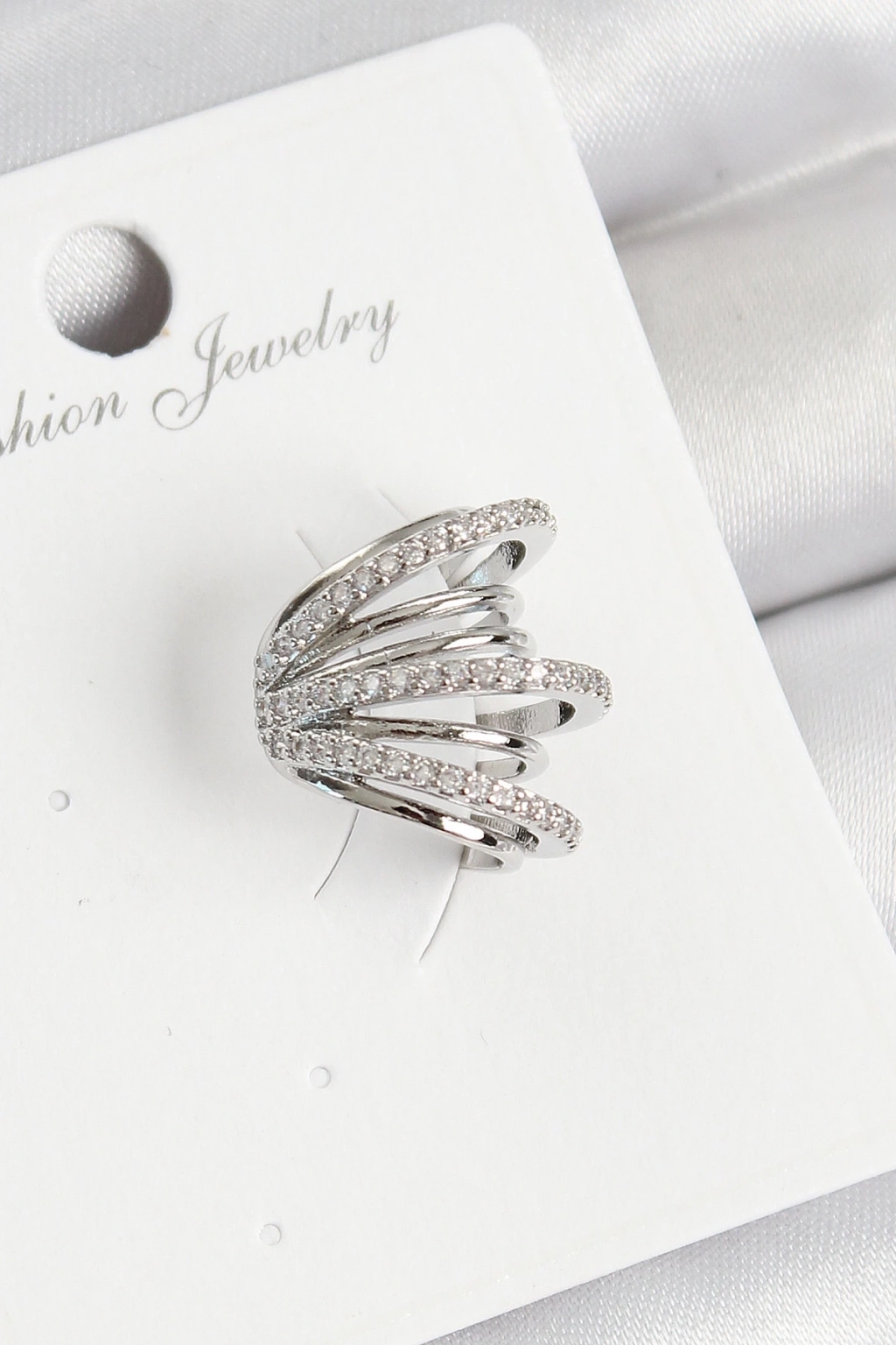 BFS Pirinç Zirkon Taşlı Yay Model Gümüş Renk Sağ Kıkırdak Küpe