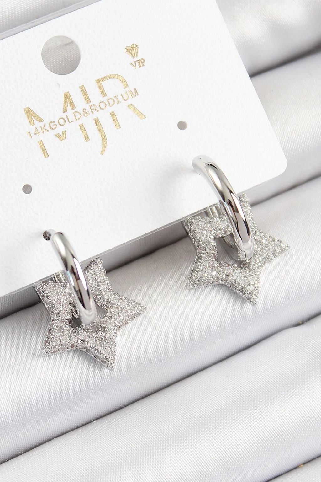BFS Pirinç Zirkon Taşlı Yıldız Figürlü Halka Model Gümüş Renk Kadın Küpe