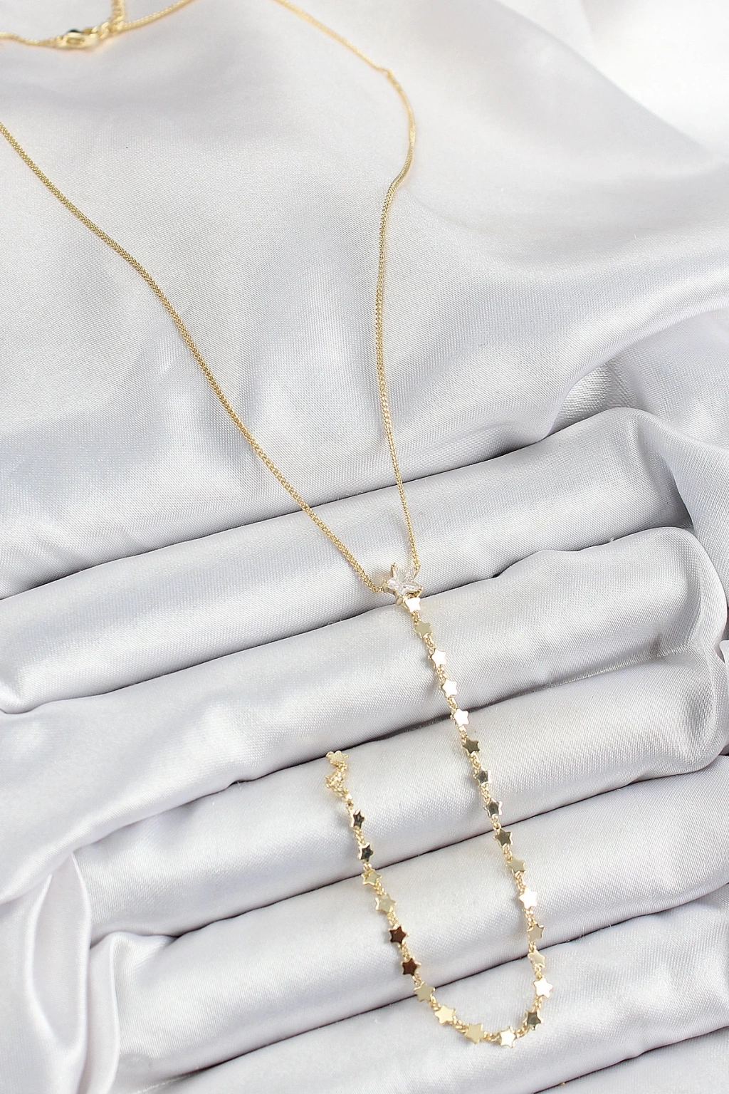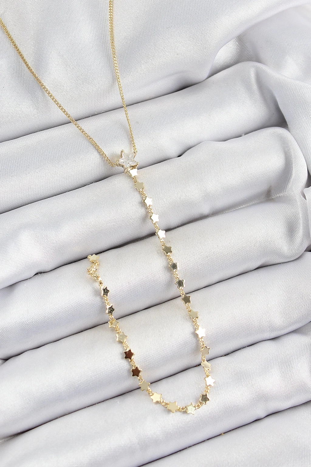 BFS Pirinç Zirkon Taşlı Yıldız Figürlü Y Model Gold Renk Kadın Kolye