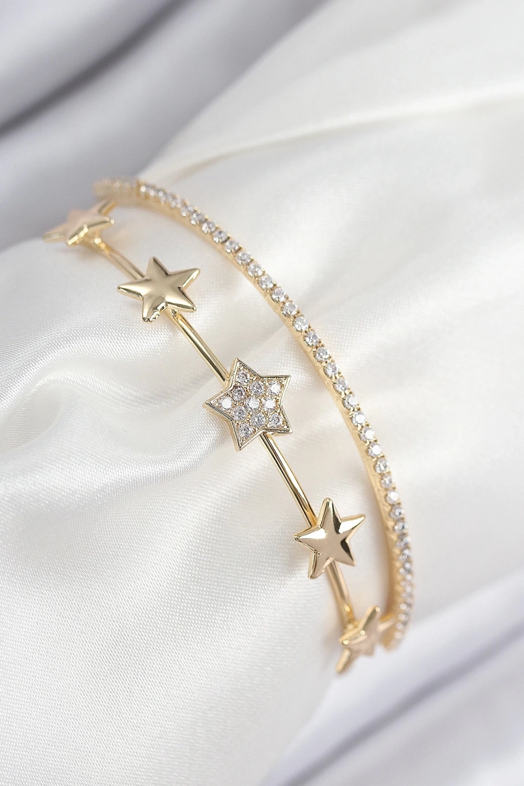 BFS Pirinç Zirkon Taşlı Yıldız Model Gold Renk Kadın Bileklik