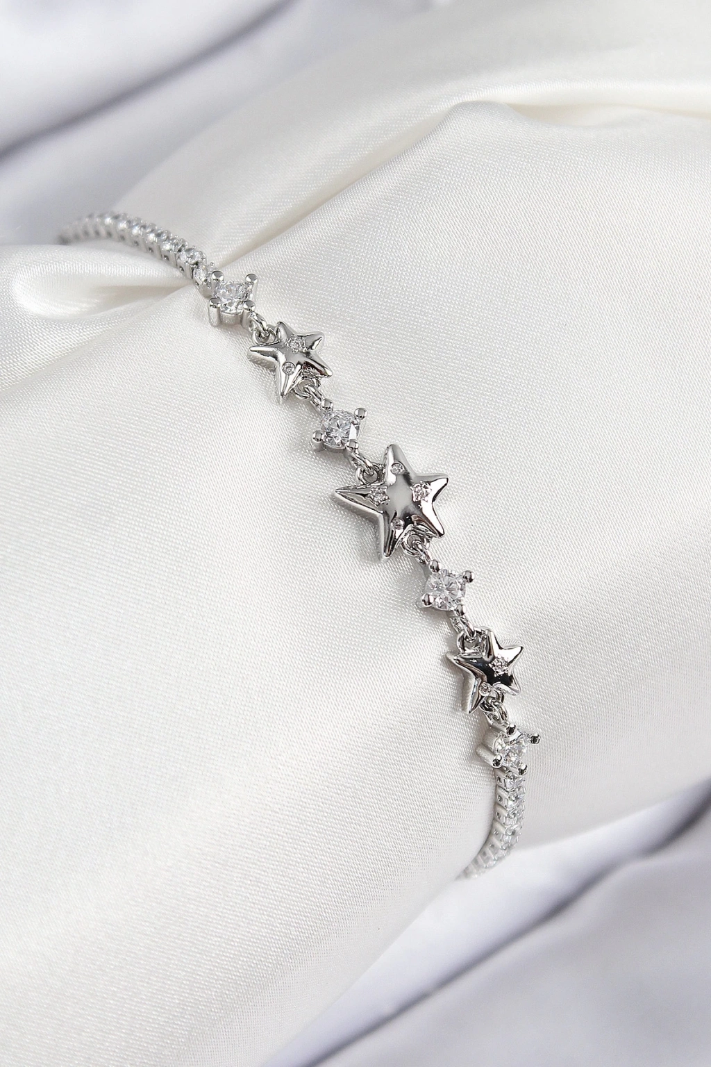 BFS Pirinç Zirkon Taşlı Yıldız Model Gümüş Renk Kadın Bileklik