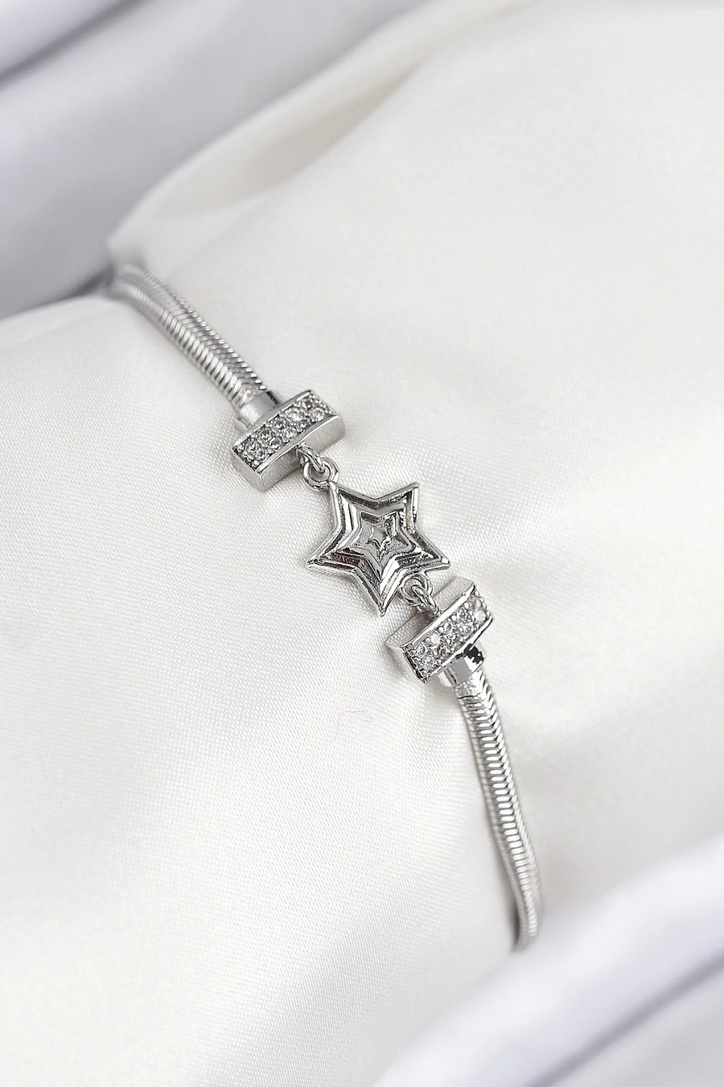 BFS Pirinç Zirkon Taşlı Yıldız Model Gümüş Renk Kadın Bileklik
