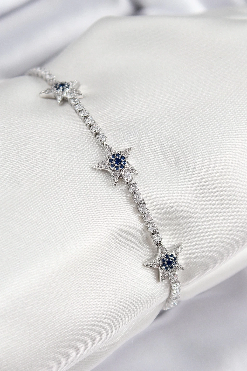 BFS Pirinç Zirkon Taşlı Yıldız Model Gümüş Renk Kadın Bileklik