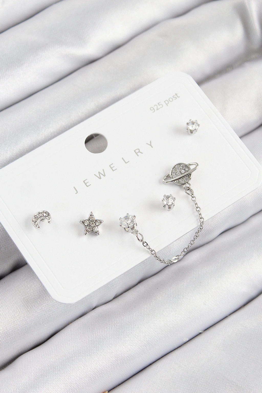 BFS Pirinç Zirkon Taşlı Yıldız Ve Gezegen Model Gümüş Renk 925 Ayar Gümüş Çivi Kadın Küpe Set