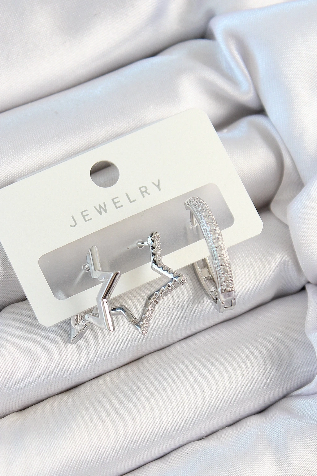 BFS Pirinç Zirkon Taşlı Yıldız Ve Halka Model Gümüş Renk 3'lü Çift Kadın Küpe Set