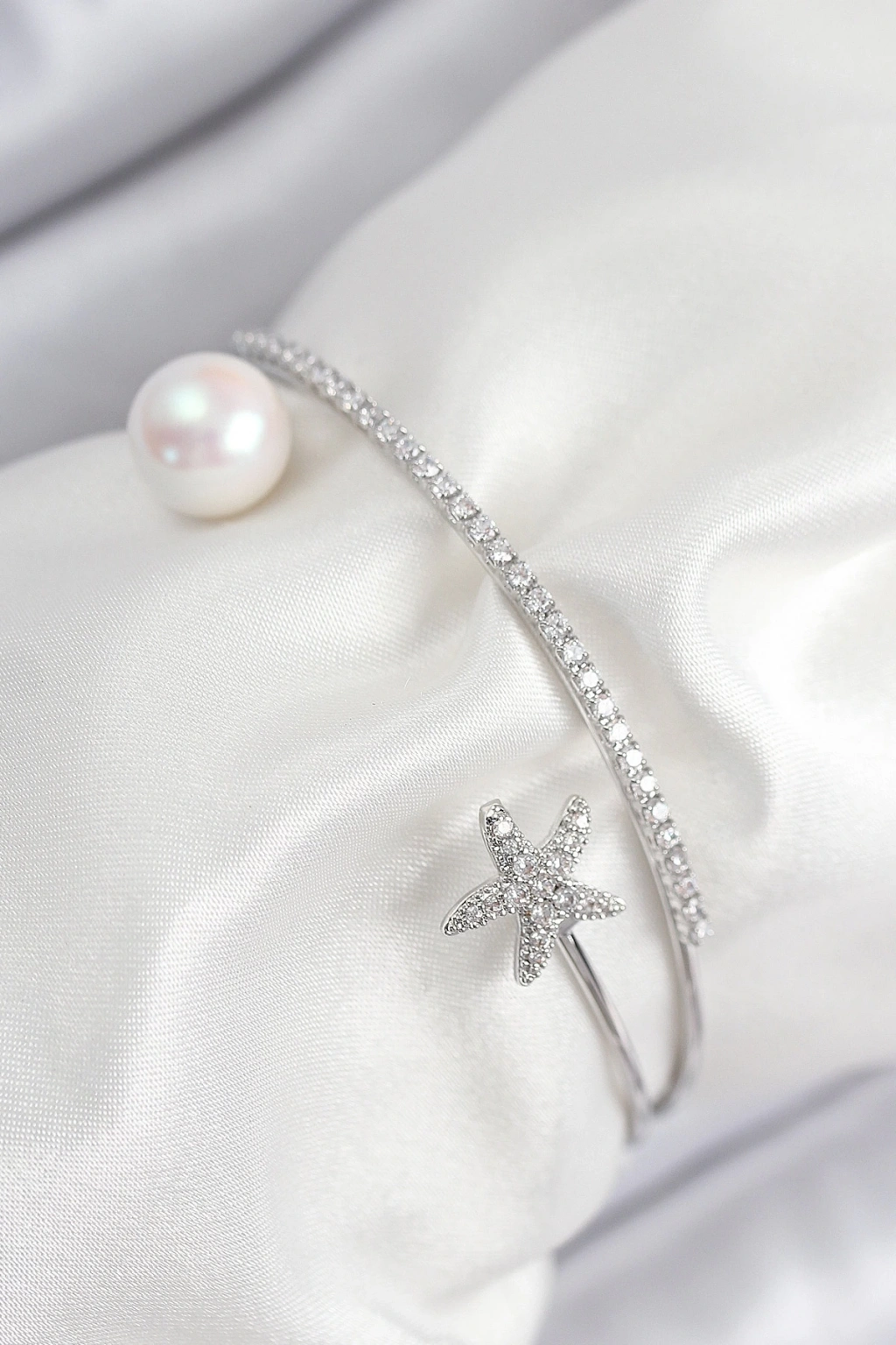 BFS Pirinç Zirkon Taşlı Yıldız Ve İnci Model Gümüş Renk Kadın Bileklik